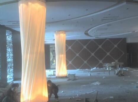 室內膜結構所使用的膜材采用特殊的聚氯乙烯材料制成,不含鎘,其防火級別為B1,通過一次或多次切割成形,并用高頻焊接完成,再按照在實地測量出的天花形狀及尺寸在工廠里生產制作而成。
